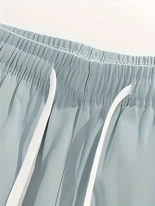 Fashionable Streetwear: Men's Solid Short Sleeve Suit & Long Pants